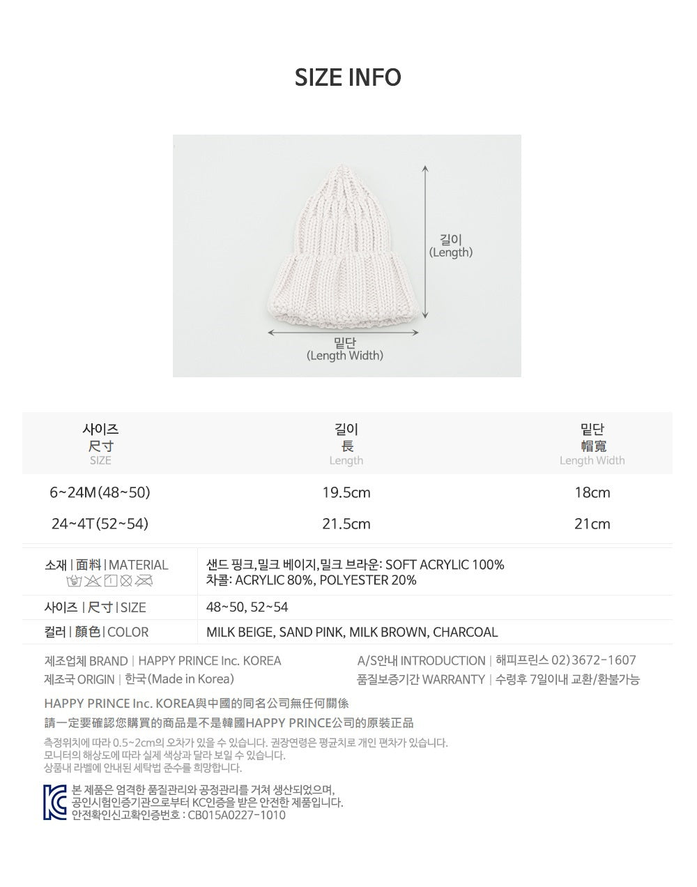 Happy Prince 韓國製 Sand親子款針織嬰兒童短毛帽