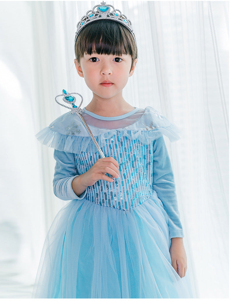 Kori Deer可莉鹿 女童萬聖節變裝派對造型服裝公主服-多款-長袖-冰雪艾莎亮片(禮服造型攝影寫真)