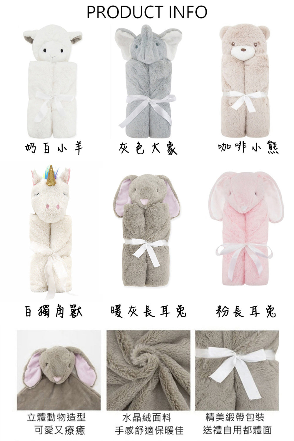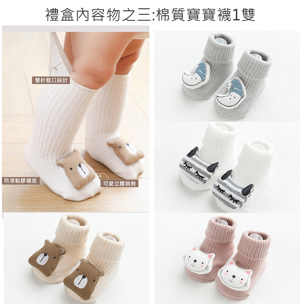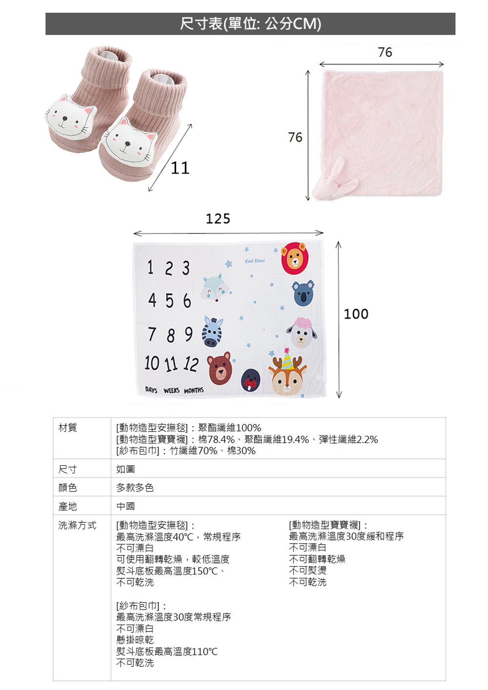 超柔軟動物嬰兒安撫毯*1、動物造型寶寶襪*1、包巾*1