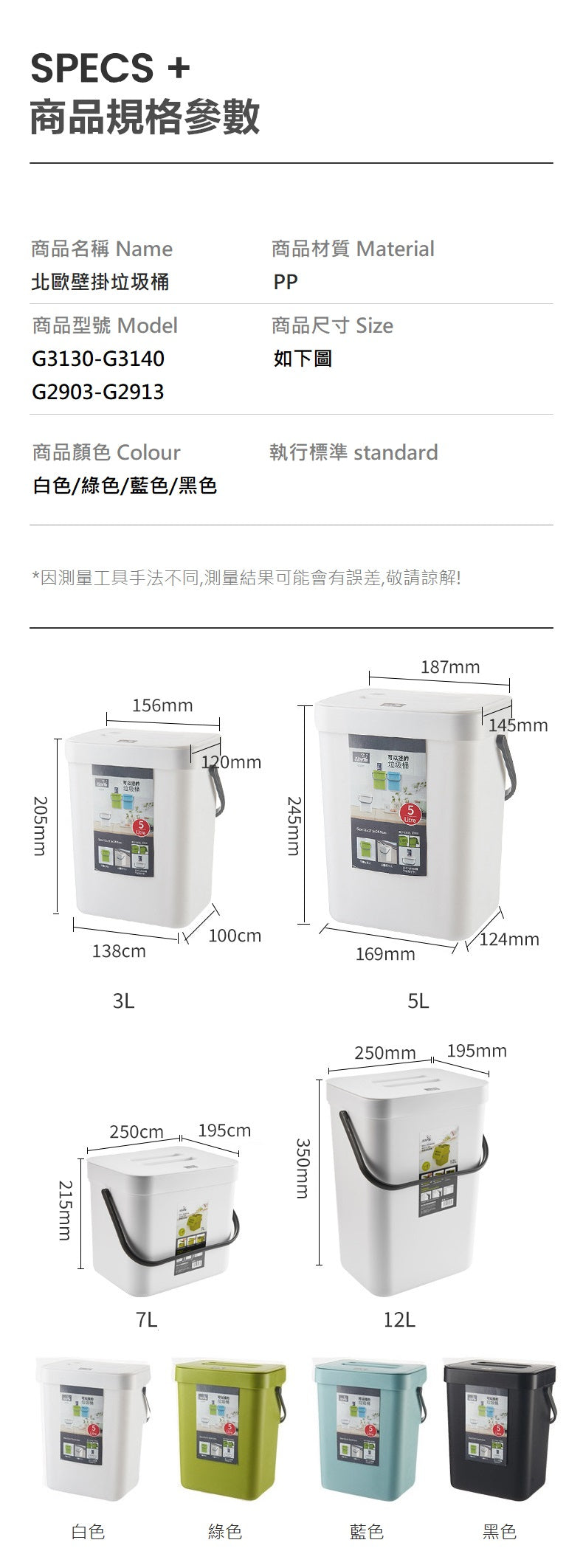 內容物:垃圾桶*1、壁掛用黏膠*1、壁掛用釘子(可自行選用黏膠或釘子)